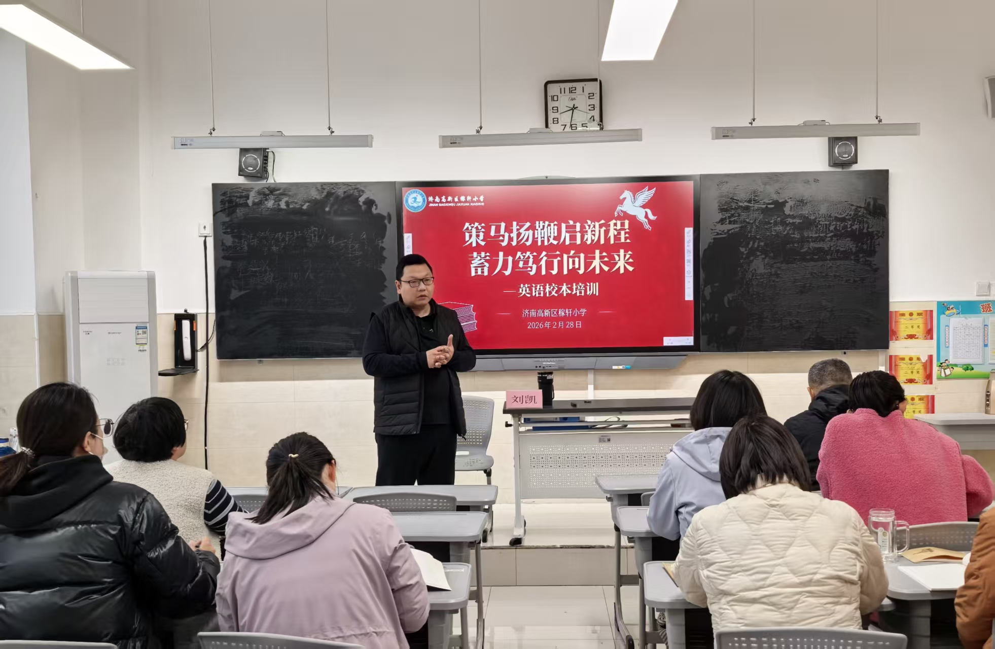 为深入贯彻新课标理念,破解教学痛点,夯实课堂教学根基,全面提升教师专业素养与育人实效,2月28日,济南高新区稼轩小学开展语文、数学、英语三科校本培训专题教研活动。活动特邀济南高新区文体部教研室小学语文教研员徐希红、数学教研员穆燕、英语教研员刘凯分别领衔授课,分学科、分场地精准施策,全校语数英教师全员参与,以高质量教研赋能教育教学高质量发展。