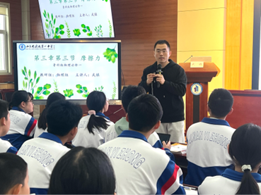 在课堂改革与学科融合环节,地理教师董克翠分享《建构主义理论下的初高中地理贯通培养路径探索与实践》,探索初高中融合育人路径;物理教师武镇展示新课堂《摩擦力》,以生动实践诠释课堂教学创新理念。