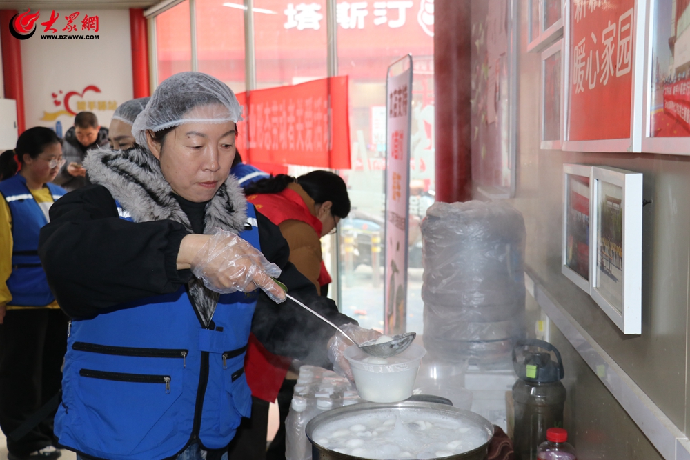 活动现场暖意融融。志愿者们早早来到驿站,分工协作、默契配合,煮制、包装,忙得不亦乐乎。很快,一碗碗香甜软糯的热汤圆出锅,氤氲的热气里满是团圆的味道。