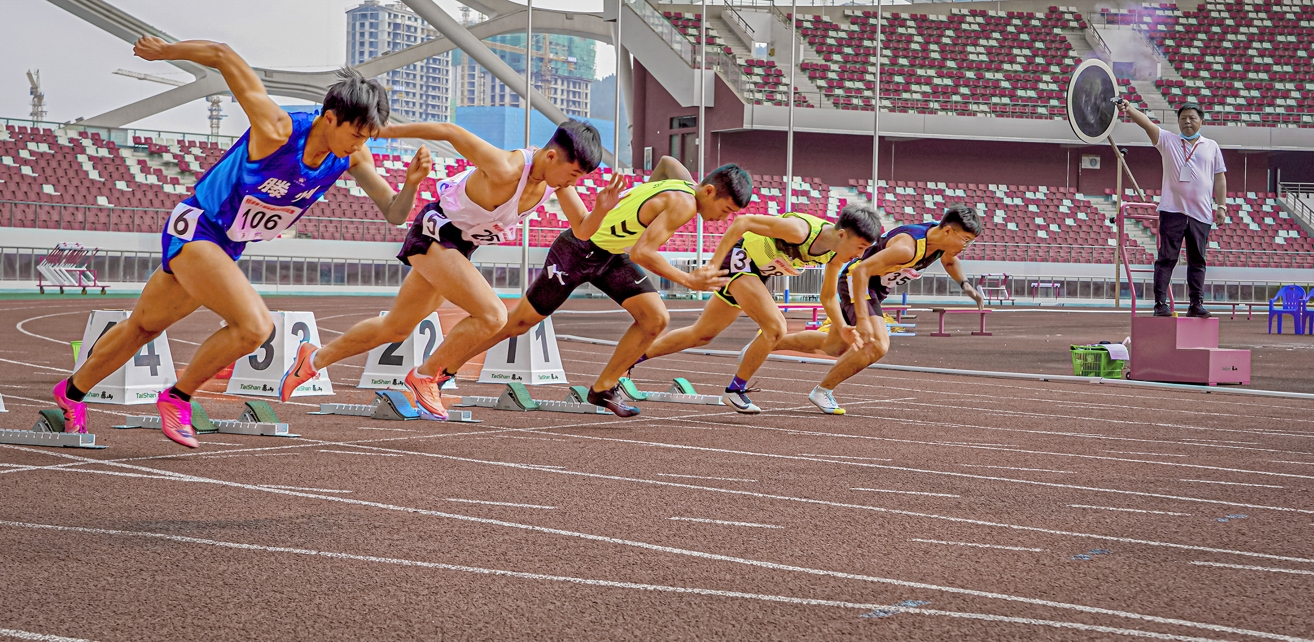 作品介绍:本组作品拍摄于2021年9月28日摄于枣庄市新城区市民中心主体育场。起跑线上,健儿们如离弦之箭,蓄势待发,展现出健与美的交响。