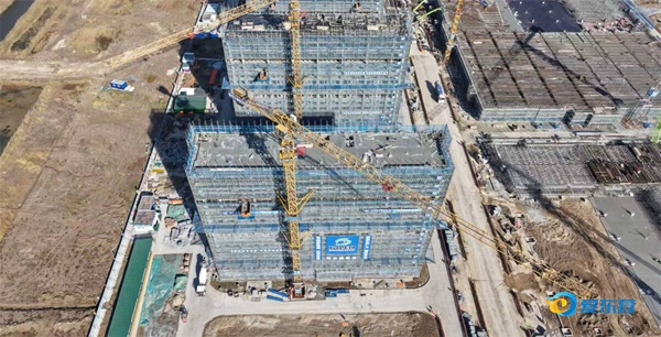 The 40GWh lithium battery green manufacturing base is under construction. [Photo/Dongying Website]