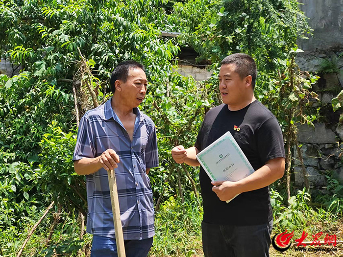 蔡小均为父老乡亲提供保单服务(张丽 供图)
