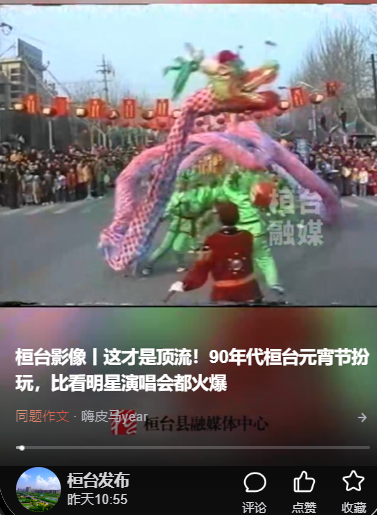 “邹平融媒”“淄博高新”“即墨融媒”“保定南易水”镜头里的文艺汇演,让大家在锣鼓喧天、欢声笑语中感受浓浓年味,共赴一场独具乡土风情的元宵民俗盛宴;“桓台发布”镜头里一段上世纪90年代桓台县元宵节扮玩活动的影像资料,还原了多少桓台人心中最温暖的年味记忆。画面里,县城中心大街人山人海,大家翘首以盼一年一度的“扮玩”盛会,想当年,这才是当之无愧的顶流;“潍坊政法”发布了潍坊部分热门景区活动,并暖心贴上了停车指南。