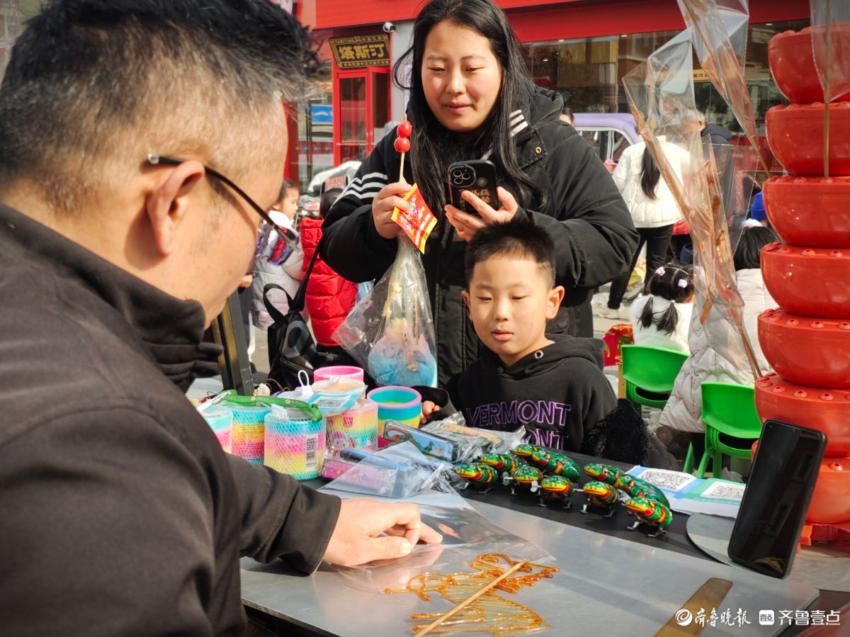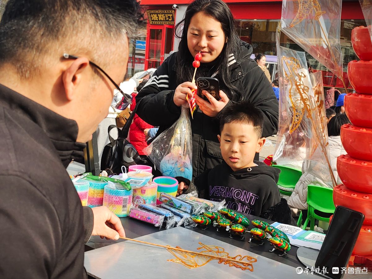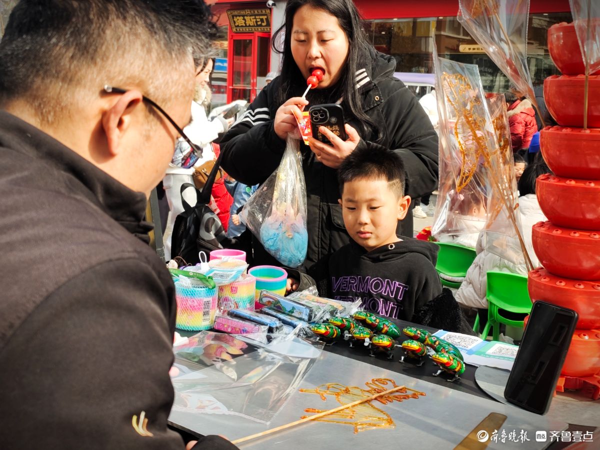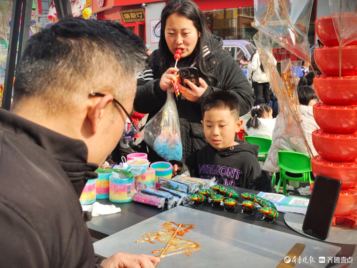 年关的大集上,一个孩子正全神贯注地看着糖画“马”的制作过程。马年到了,糖画“马”成了孩子们的最爱。高军摄