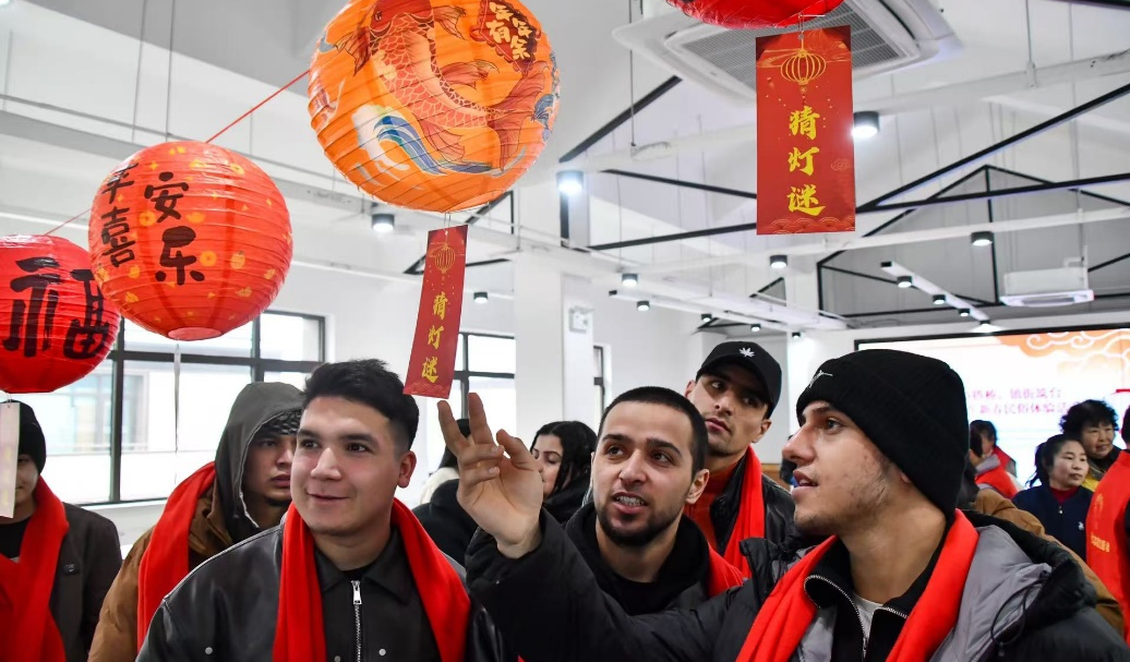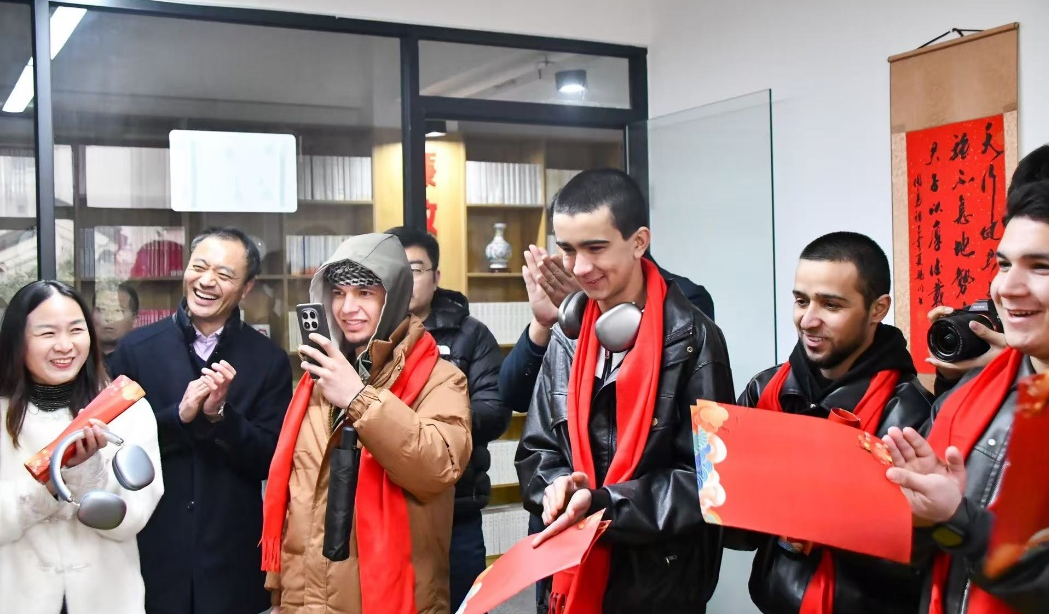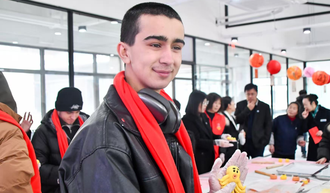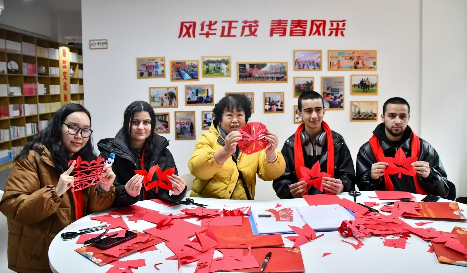 在党员活动室和干部大讲堂,留学生们分组体验民俗项目:面点师傅指导下,他们揉面团、包馅料,亲手制作象征团圆的汤圆和花馍;剪纸老师现场教学,一张张喜庆窗花在指尖诞生;书法室内,提笔蘸墨写下形态各异的“福”字;五彩缤纷的灯谜前,大家凝神思考,在翻译帮助下解读谜面背后的吉祥寓意。短短两小时,留学生们带着亲手制作的民俗作品和满满的文化收获,意犹未尽地结束了这场中国年文化探索之旅。