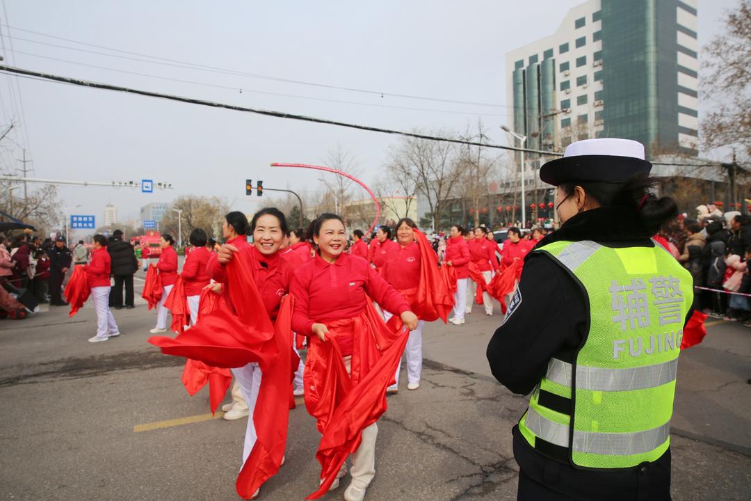 舞龙灯、划旱船、扭秧歌、花车巡游等,2026年沂源县元宵节民俗扮玩大荟活动精彩纷呈,吸引了众多群众在沿途驻足观看。为全面做好道路交通安保工作,大队共设立了40余处执勤点位,出动警力120余人,外围管控、沿线警卫和警车巡逻全面推进,同时,线上线下实时联动,及时反馈路面管控情况,确保活动期间道路交通井然有序。