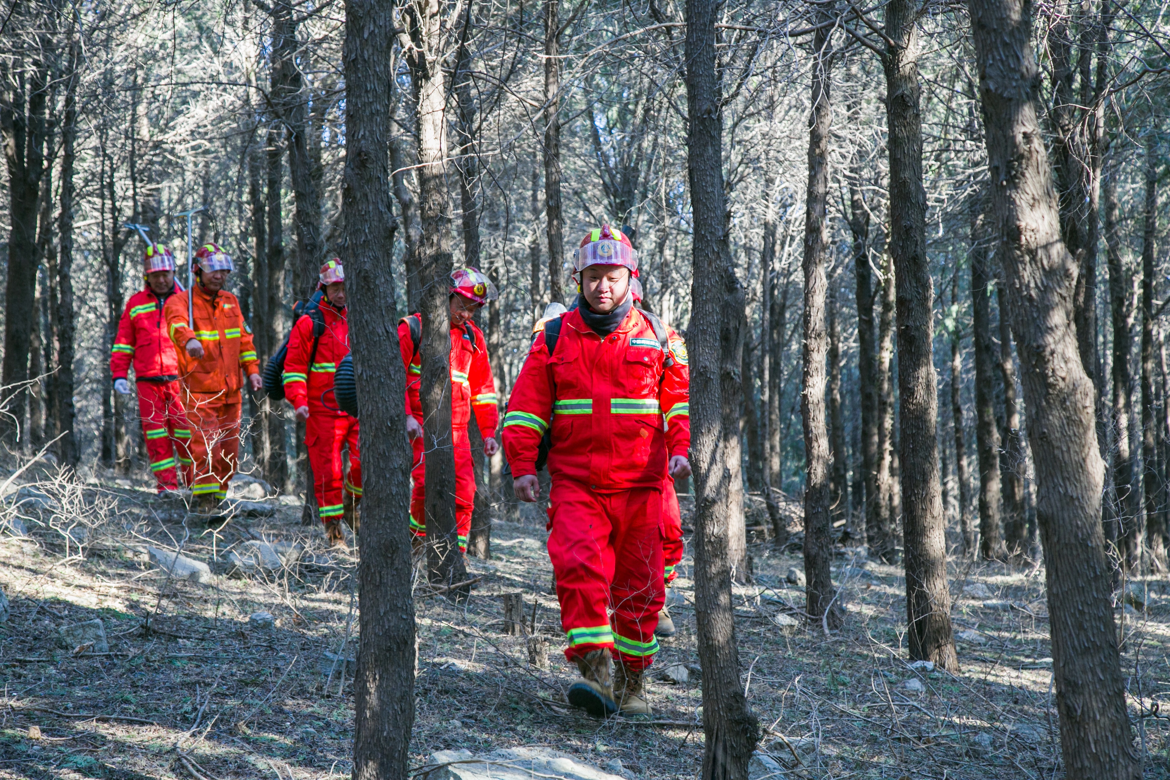 3月3日一早,潍坊昌乐孤山的山脊还有缕缕薄雾,59岁的护林员殷治才与同伴,背起风力灭火机,一起踏上了林场与村庄交界的巡逻路。