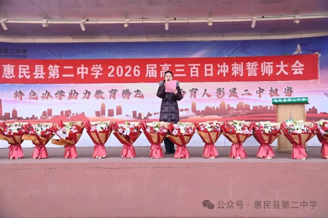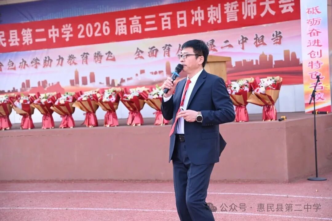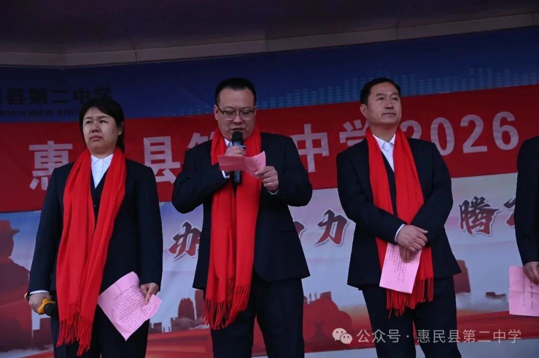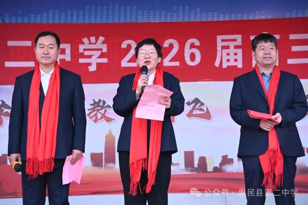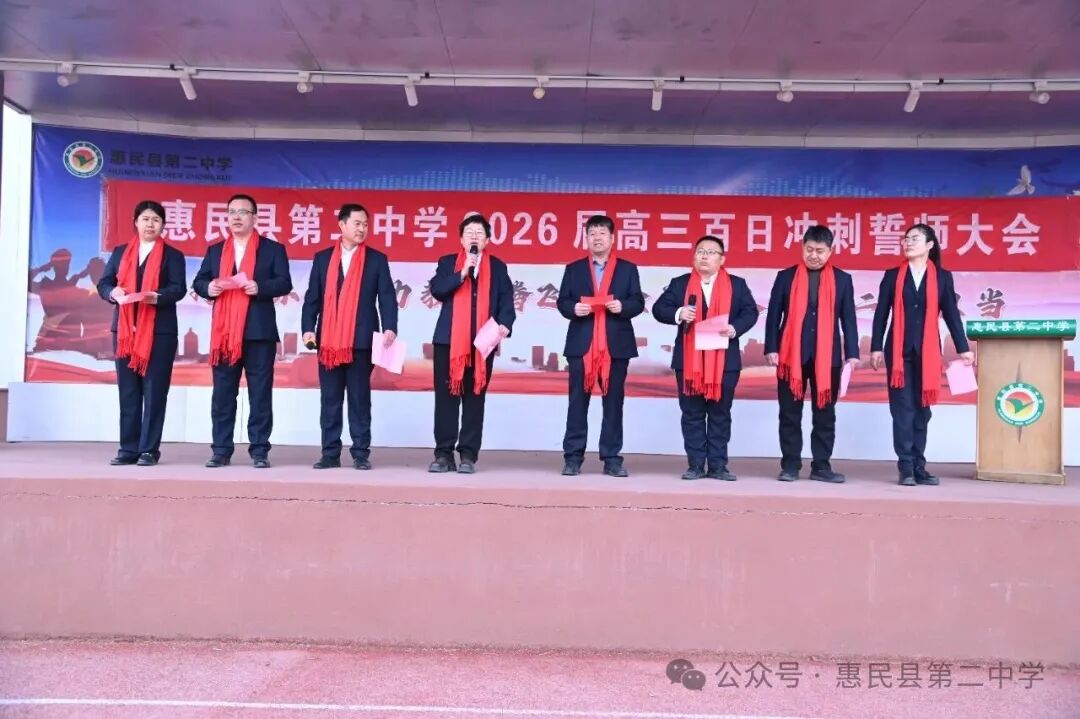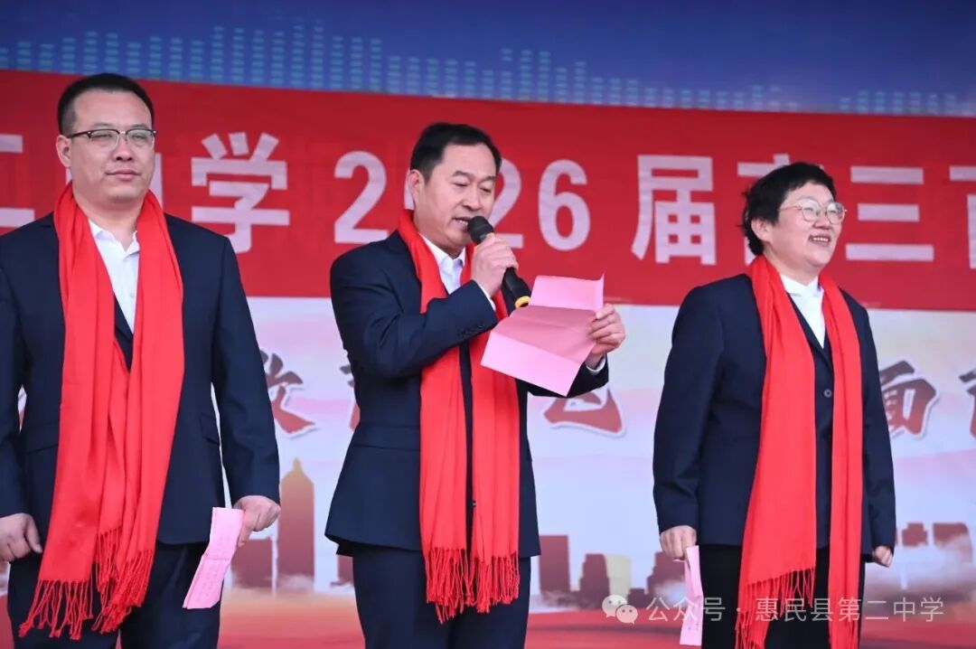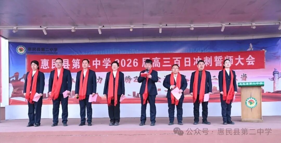 誓师大会在激昂的誓言中落下帷幕,但百日冲刺的战鼓已然擂响。100 天,是梦想与现实的距离;100 天,是汗水与荣光的见证。愿惠民县第二中学 2026 届高三学子,以今日之誓为帆,以奋斗之力为桨,在高考的海洋中劈波斩浪,用青春的笔墨书写最壮丽的华章,待六月盛夏,金榜题名,载誉归来。