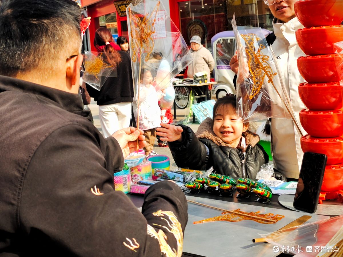 年关的集市上,孩子们都爱上了各式各样的糖画。瞧,孩子们拿着那甜蜜蜜的糖画格外欢喜。高军摄