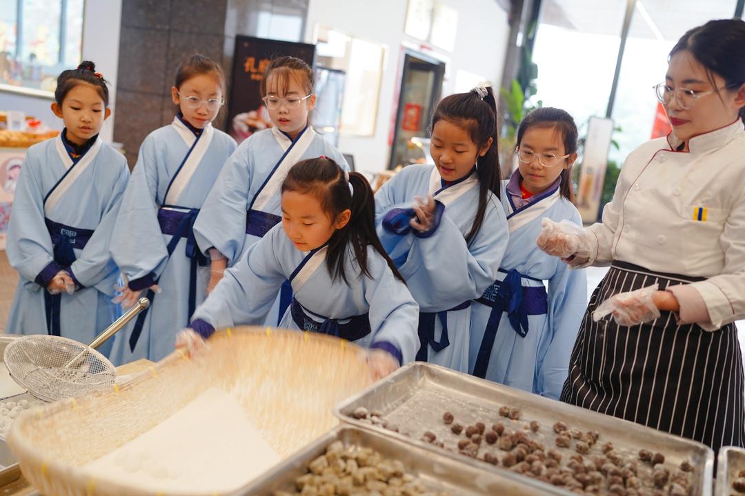 为迎元宵佳节,孔子博物馆特别推出“灯火映孔博·雅趣闹元宵”研学营活动,为青少年观众打造了一场沉浸式的传统文化体验之旅。在“巧手塑面灯”环节,同学们亲手制作代表十二个月的豆面灯,并通过冷凝水实验,感悟古代农耕智慧与现代气象科学的异同。“萝卜灯雕刻”体验,让大家一同将儒家智慧与文物纹样融入雕刻之中,打造成为别具一格的“萝卜灯展”。同时,在老师的带领下,同学们学习北方元宵的“滚制”工艺,亲手调配馅料,体验制作元宵的乐趣。还有猜灯谜、制作荷花灯环节,让同学们寓教于乐,学在其中。