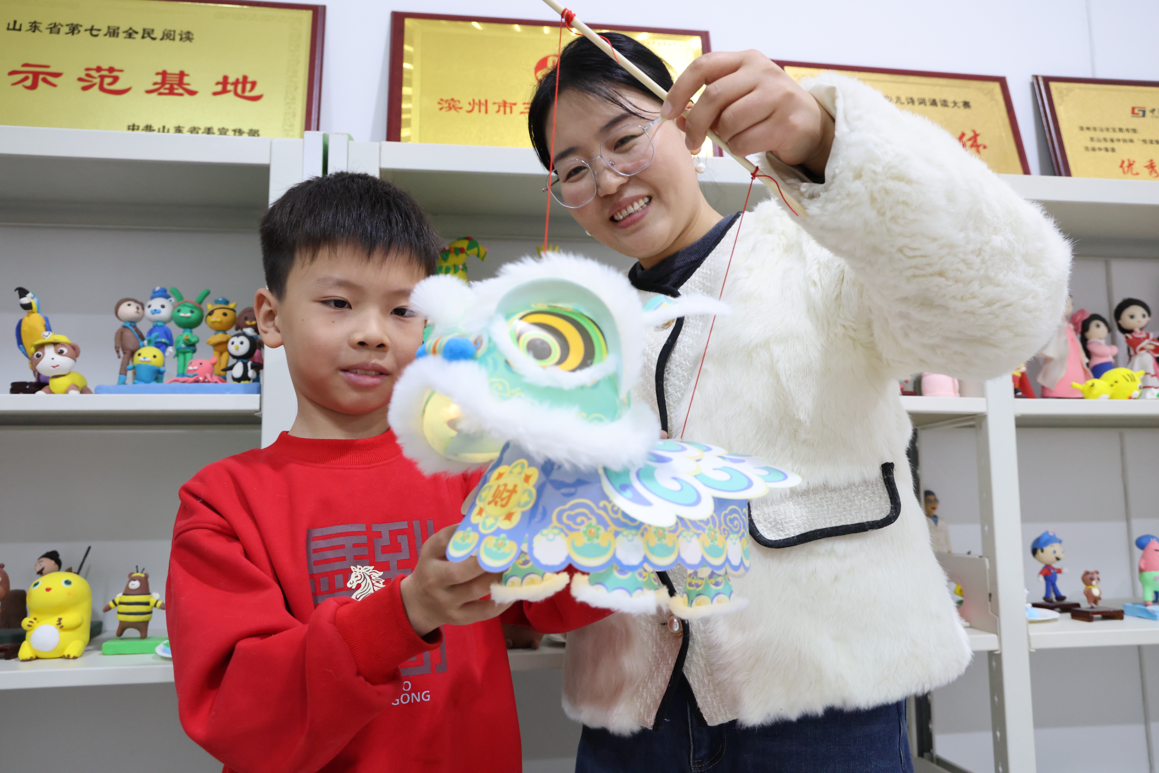 3月3日,滨州市沾化区图书馆开展“醒狮闹元宵书香启新章”系列活动。活动中,孩子们与家长一起制作“醒狮”花灯、猜灯谜,让孩子们在动手实践中感受元宵佳节的喜庆氛围与醒狮民俗魅力,让市民近距离感受非遗文化的独特魅力。(大众新闻记者 程芃芃 通讯员 卞俊涵)