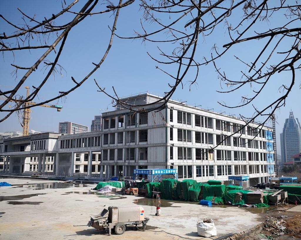 记者在现场注意到,各个教学楼等主体已完工,接下来将进行室内外装修阶段,放眼望去整片教学楼十分气派。