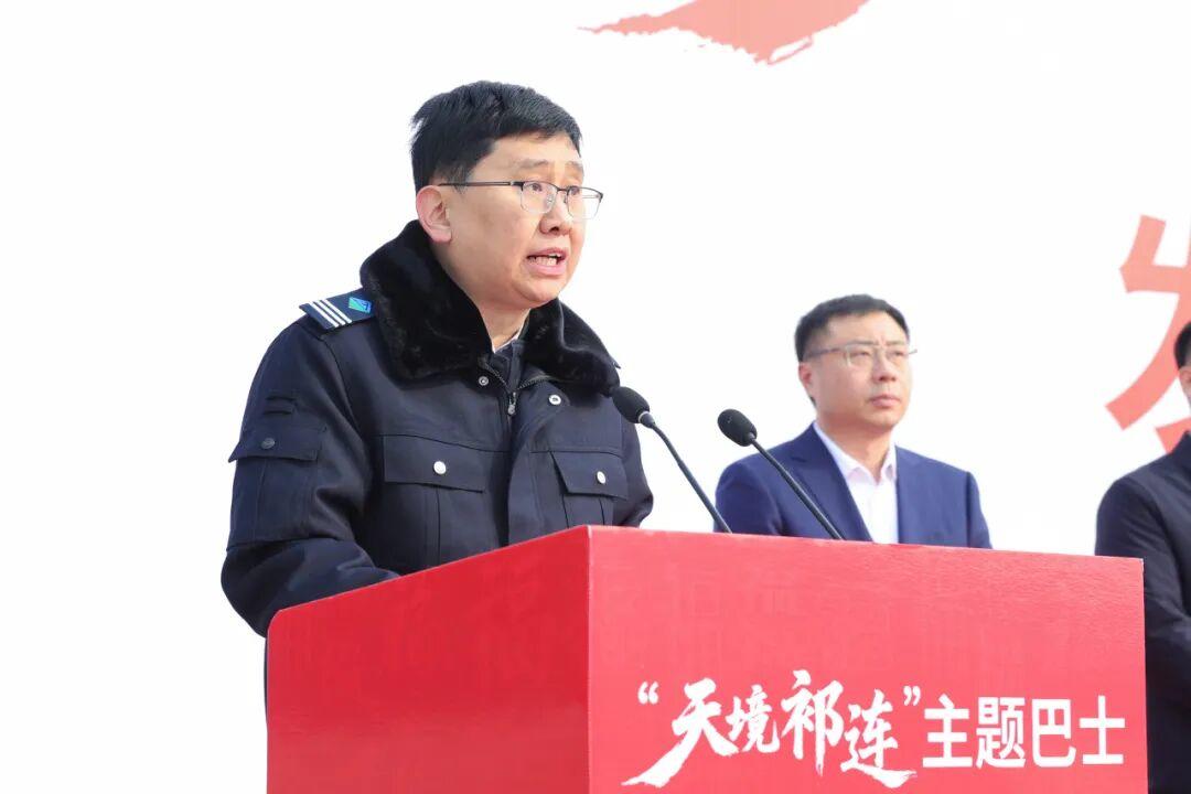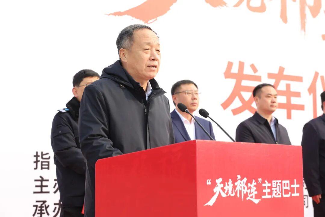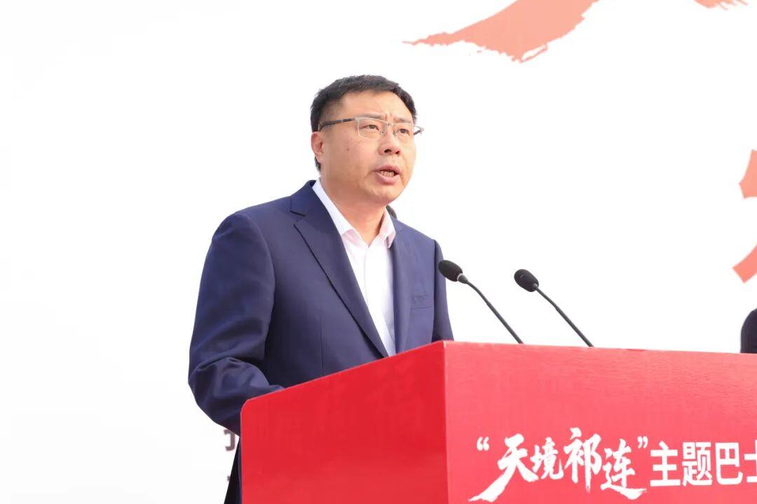 市发展改革委党组成员、副主任王长亮宣布“天境祁连”主题巴士正式发车。