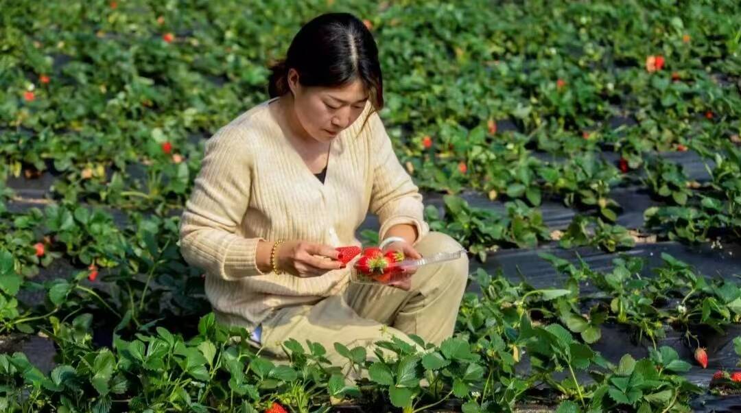 她流转土地,搭建大棚,从零开始学习草莓种植技术,昔日丈量布料的尺子,变成了测量株距行距的工具;曾经研究流行款式的目光,转而聚焦在作物的生长态势上。