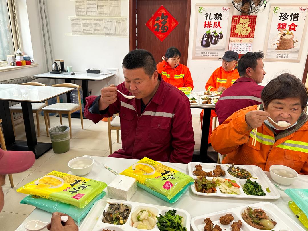 午饭时间,大家吃着一口口软糯香甜的汤圆,甜意瞬间沁满心脾。环卫工人王师傅感慨道:“虽然春节期间能与家人共享团圆欢乐的时光,但社区准备的这份汤圆,让我也感受到了家的温暖。”一碗汤圆,承载的是社区的牵挂;一次相聚,凝聚的是邻里的温情。社区工会驿站与助老食堂始终以暖心服务为抓手,持续关注新就业群体的需求,用实际行动让他们在异乡也能感受到归属感。