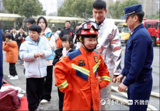 随后,消防员细致讲解各环节操作规范和安全要点,带领孩子们开启沉浸式消防体验。现场设置多样体验环节,孩子们亲手试穿厚重的消防战斗服,真切感受消防员出警时的不易;参观消防健身房,了解消防员日常体能训练的内容与意义,感受消防职业对身体素质的严苛要求;走进荣誉室,在讲解中了解锦旗、奖状背后的救援故事,体会消防队伍的责任与荣光。