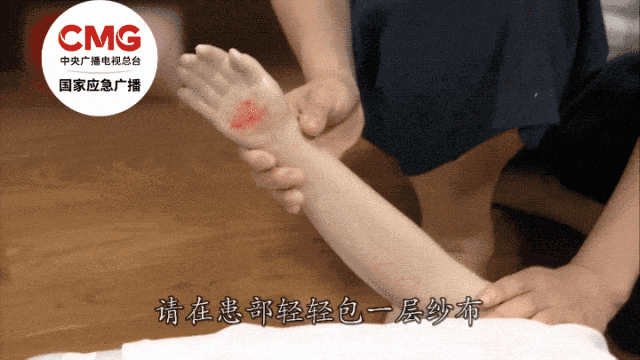 盖:用干净的布盖住伤口,并固定好。