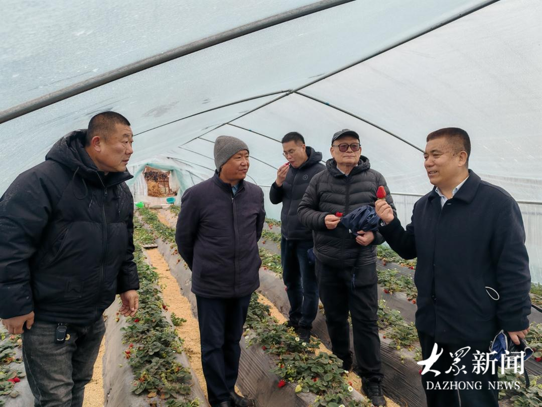 彭福田在市中区后小湾草莓采摘园指导草莓种植管理。