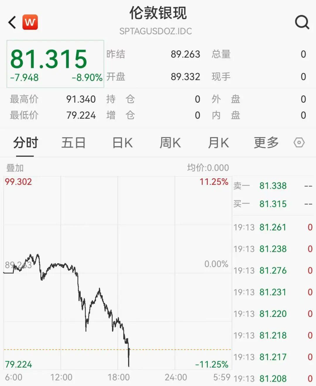 3月3日晚间,现货金银双双急跌,现货黄金跌2.5%,报5188.86美元/盎司;现货白银一度跌11.25%,现报81.31美元/盎司。