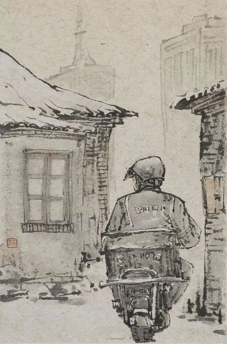 《晨雪市声》作者:王宇鹏 纵33cm 横21cm