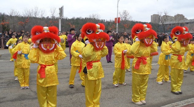 随着“点睛”仪式落幕,浩浩荡荡的巡游队伍沿着既定路线缓缓前行。其中,省级非遗串黄河喜庆锣鼓表演格外引人注目,民间艺术家们携手峰山小学学生队伍,身着传统服饰、手持锣鼓器械,以娴熟精湛的技艺演绎着多样锣鼓走阵,雄浑激昂的旋律在街头巷尾久久回荡,为整场展演注入了醇厚绵长的传统韵味,尽显非遗文化的深厚底蕴与鲜活生命力。
