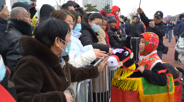而在众多展演方阵里,宋村镇方阵凭借独特创意备受瞩目。队伍不仅带来了传统秧歌、西游记人物扮相等经典民俗表演,更紧扣马年生肖主题,将两匹高头大马与祥龙元素巧妙融入巡游队列,灵动的编排实现了传统民俗与时代元素的完美融合,成为巡游途中一道亮眼风景,引得沿途市民游客纷纷驻足拍照、掌声喝彩声不断。