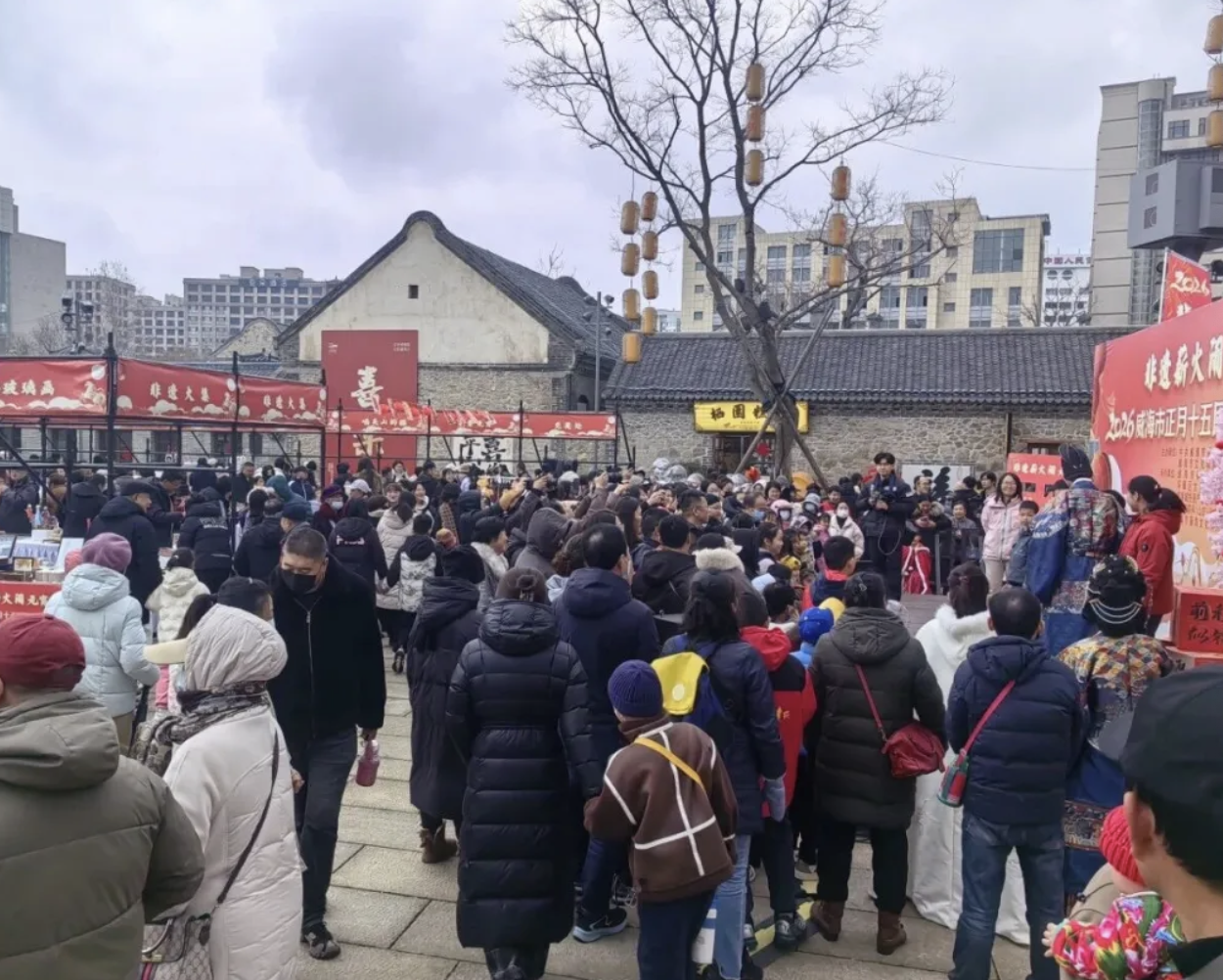 2026年3月3日,正月十五元宵节当天,由威海市委宣传部、威海市文化和旅游局共同主办的“非遗薪火闹元宵”——2026威海市正月十五民俗非遗展演活动在栖霞街火热上演。鲁绣、乳山大秧歌等26个非遗项目集中亮相,民俗巡游、互动体验、灯谜赏玩、美食派送等环节轮番登场,现场锣鼓喧天、人潮涌动,市民与游客在百年老街沉浸式感受非遗魅力,共赏民俗风情。
