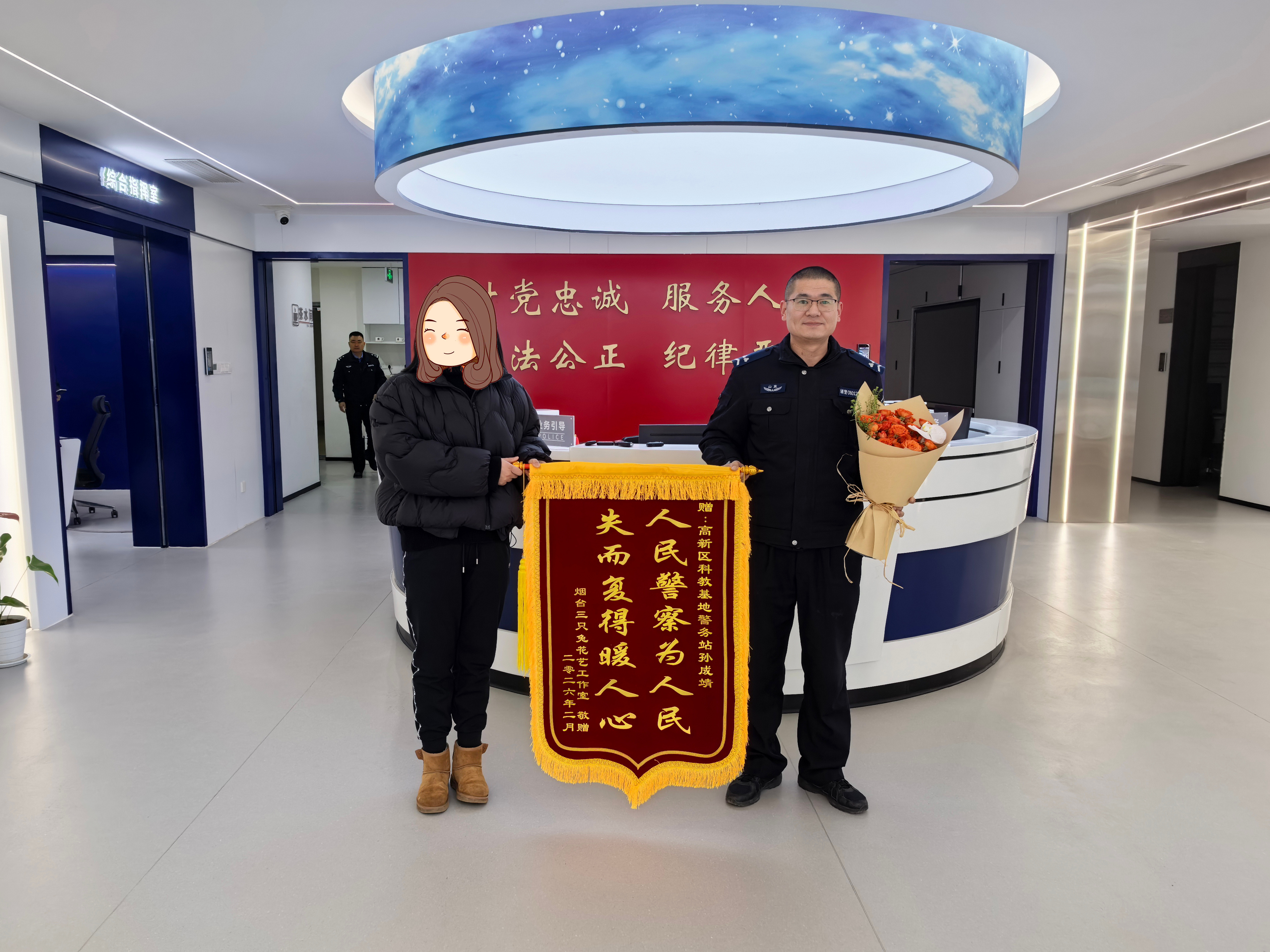 2月24日,科教基地警务站接到一起求助警情:辖区群众因一时疏忽,让爱犬趁其不备跑出店门,不知所踪。了解情况后,警务站辅警孙成靖迅速赶到店铺附近进行走访,同时调取店内及周边区域视频监控协助查找。经仔细排查,发现犬只跑出店铺后被途经此地的收容所工作人员收留。确认线索后,孙成靖立即与收容所取得联系并帮助群众协调办理交接手续。同日,报警人专程来到警务站,将一面印有“人民警察为人民,失而复得暖人心”的锦旗送到孙成靖手中,对其热心帮助、认真负责的工作态度表达诚挚感谢。