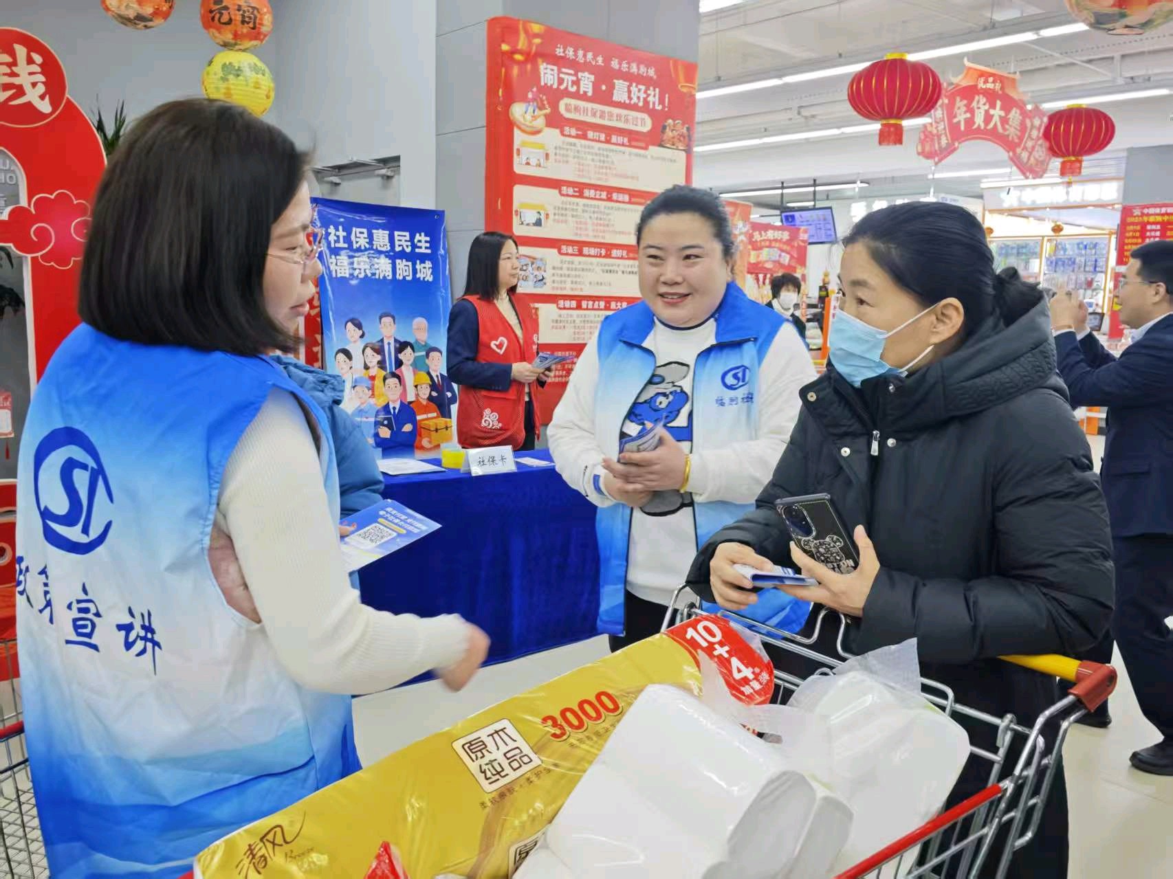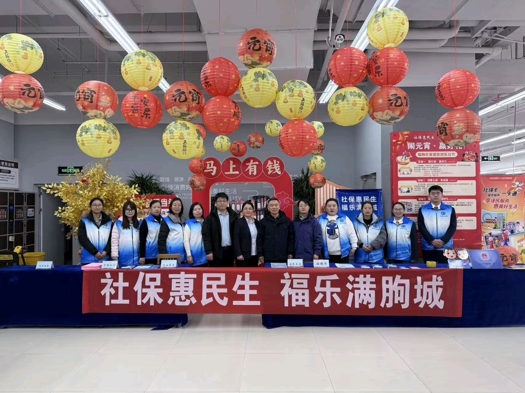3月3日,农历正月十五,上午10时,临朐县兴隆路佳乐家(临朐店)二楼超市入口处人头攒动、欢声如潮。由临朐县社保中心联合城关街道龙达社区、新华社区、佳乐家临朐店及多家社银合作银行共同主办的“社保惠民生 福乐满朐城”元宵节主题活动火热开启。活动采取“线上直播+线下互动”双线并行模式,将传统节日氛围与社保