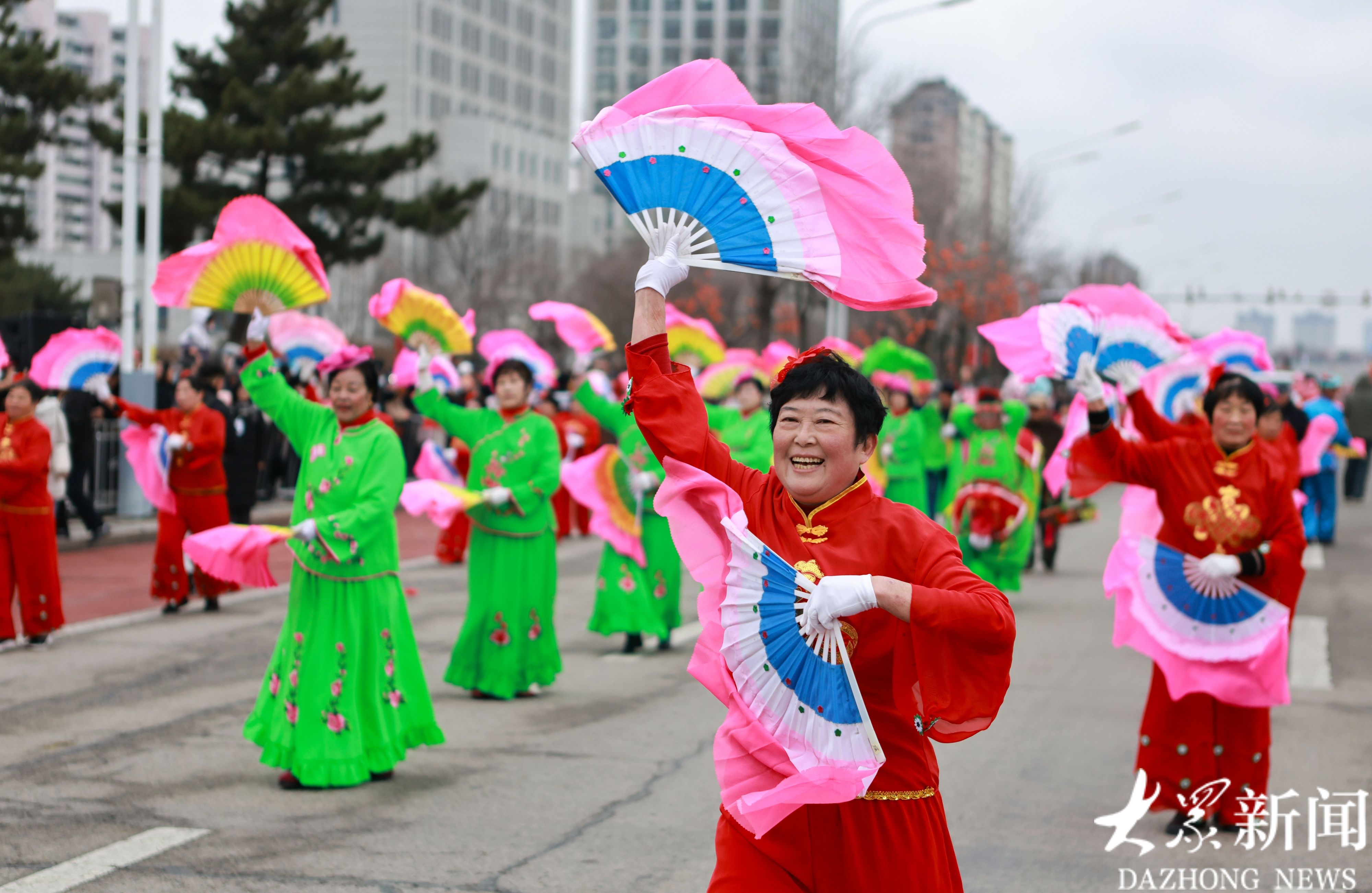 3月3日农历正月十五,威海市文登区举行庆元宵民俗展演,17个方阵1300多名群众演员为现场万名观众带来秧歌旱船、舞龙舞狮,还有身着国风文化衫的年轻人带来热舞,让市民和游客共赏文化盛宴,共庆元宵佳节。