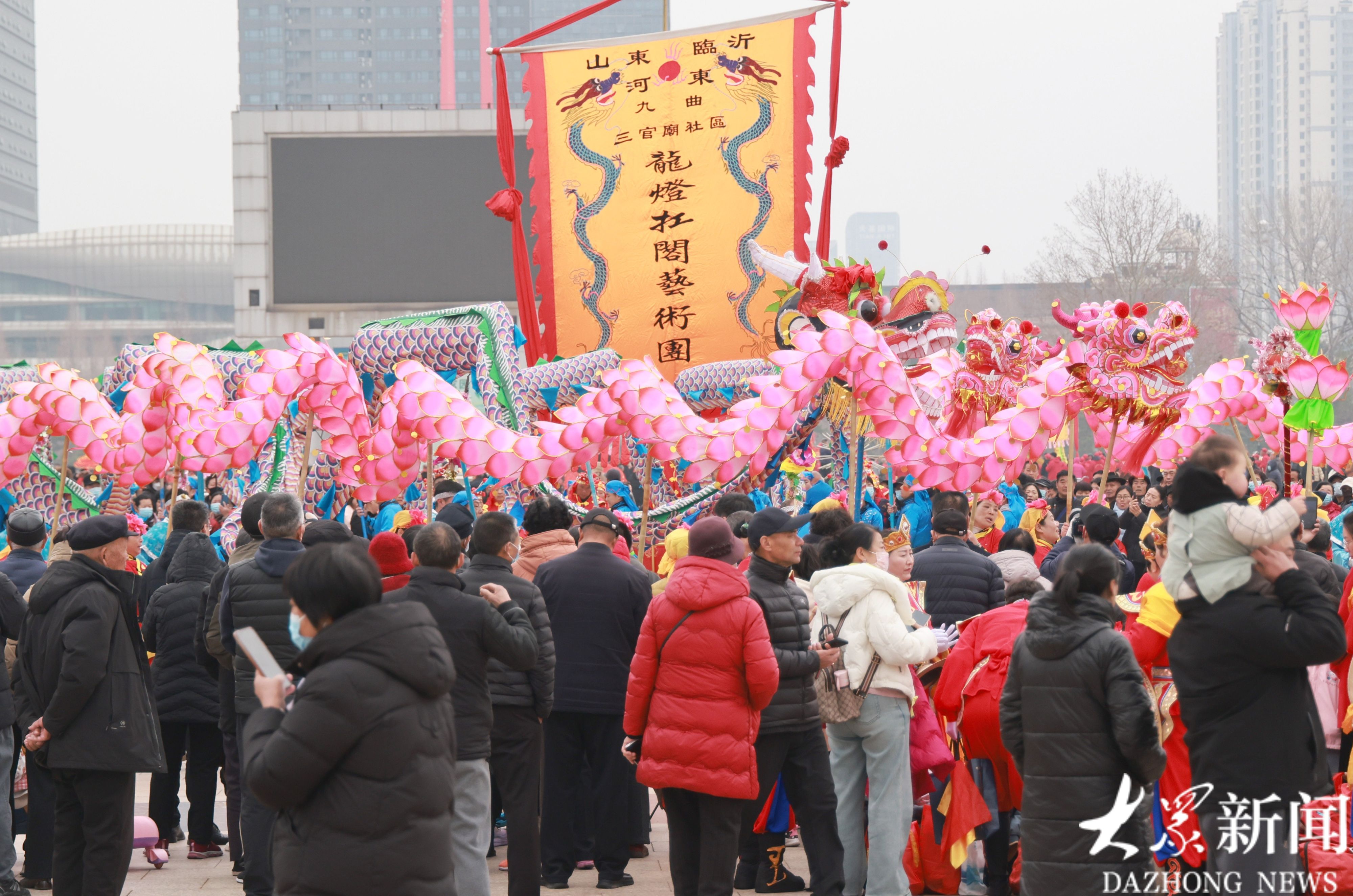 3月3日正月十五,临沂人民广场,“春风锣鼓闹元宵”临沂市第二十六届民间秧歌会开演,现场有国家级非遗龙灯扛阁以及舞龙舞狮、竹马旱船、高跷腰鼓等多种传统表演项目,为群众打造一场流动观赏、喜庆热烈的文化盛宴。