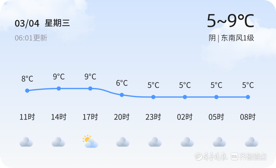 今天是3月4日,星期三,农历正月十六。枣庄市今日天气阴沉,气温在5℃至9℃之间,东南风1级,空气湿度较高,达到88%。当前空气质量为中度污染(PM2.5浓度为135微克/立方米),建议敏感人群减少外出,必要时佩戴口罩,关闭门窗,保持室内湿润。