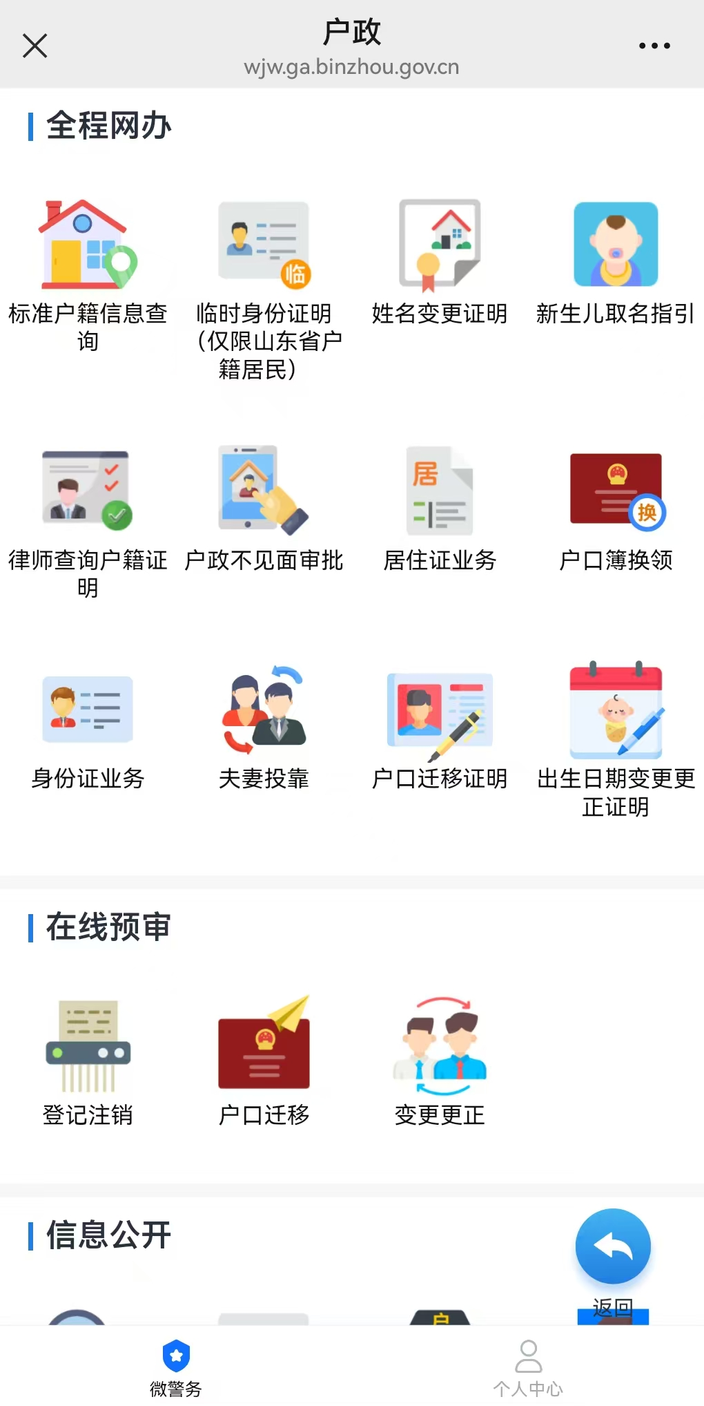 1.微信关注“山东微警务”或“滨州微警务”公众号,须实名进行注册后通过“居住登记信息”模块申报居住登记。