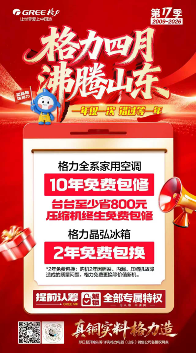 从2009到2026,“格力四月沸腾山东”已陪伴山东消费者走过17个年头。它不仅是格力深耕山东市场的重要纽带,更以持续升级的福利与有温度的服务,践行着“让世界爱上中国造”的品牌承诺。
