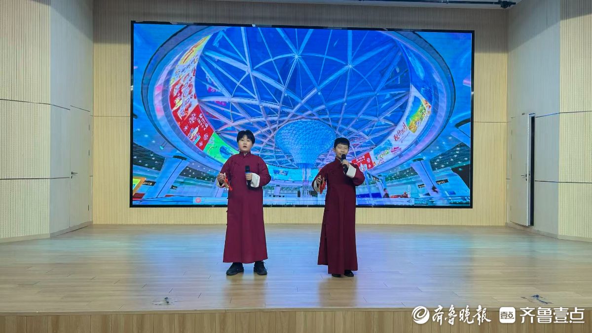 学生们走上舞台,通过快板、情景剧、朗诵、小合唱以及非遗快闪等沉浸式展演,生动还原了假期寻访过程中的所见所闻。从老街巷里的非遗技艺到泉水畔的民俗传承,孩子们用自己的方式诠释了对家乡文化的理解。
