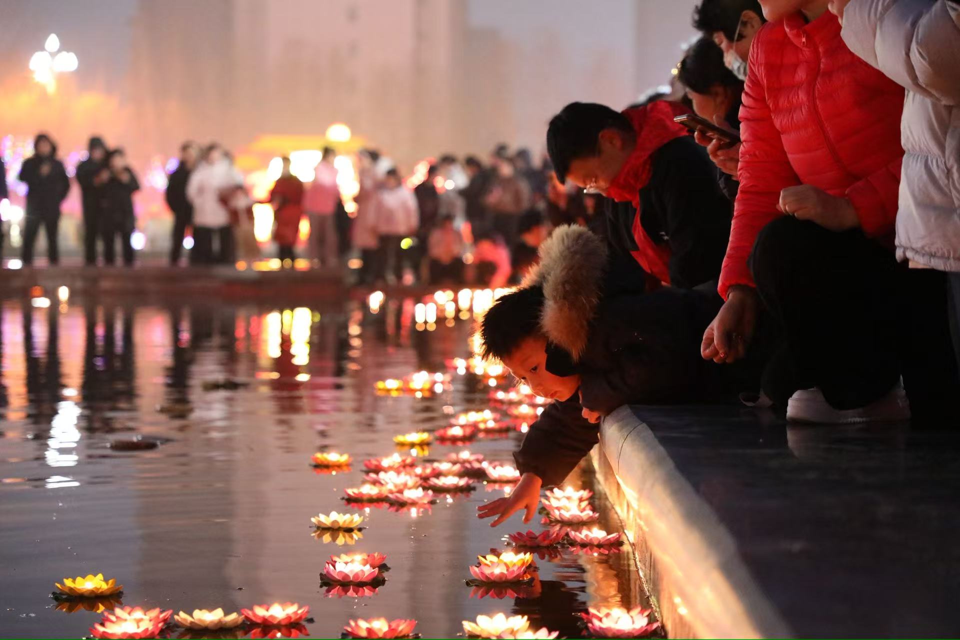 “妈妈你看,河灯带着我的愿望飘走了!”夜幕下,鱼台县孝贤文化广场灯火璀璨,10岁的朵朵踮起脚尖,看着莲花灯在水中缓缓漂起,兴奋地手舞足蹈。
