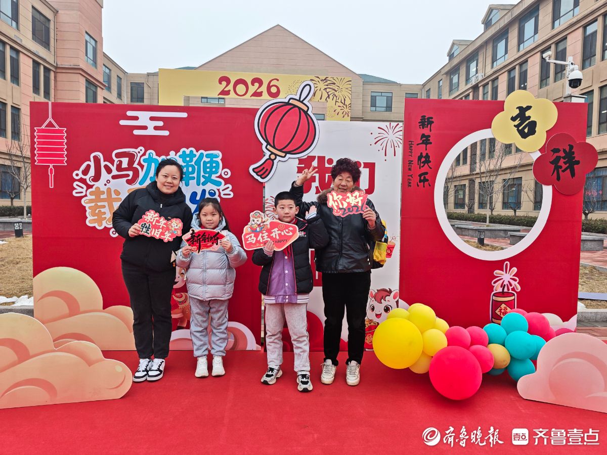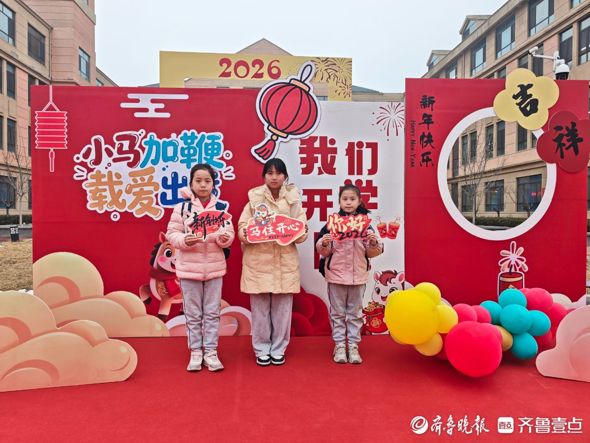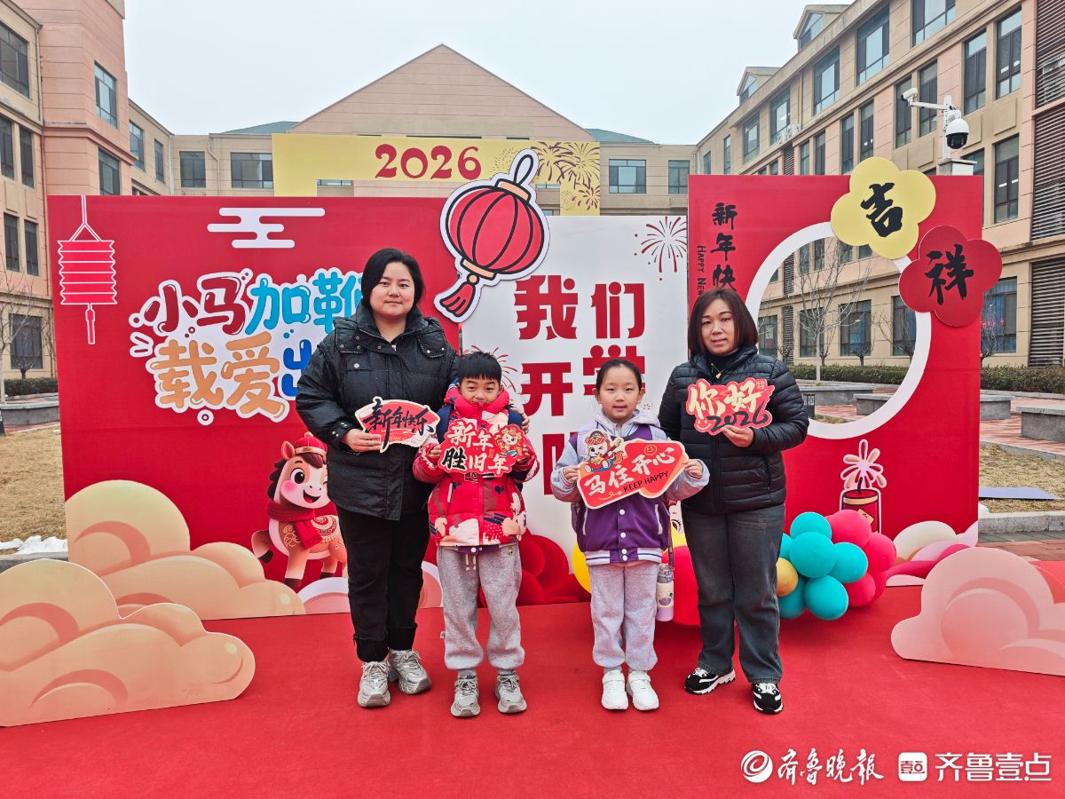 3月4日清晨,济南高新区稼轩小学“骐骥驰骋启新程,云帆再扬攀新高”主题开学典礼温馨启幕。校门口,校领导、教师与家长志愿者一同值守,手持迎新道具迎接学生返校,现场秩序井然、暖意融融。学生们依次来到“小马加鞭,载爱出发”主题背景板前,驻足拍照、打卡留念,用镜头记录新学期的美好瞬间。(齐鲁晚报·齐鲁壹点记者延瑜)