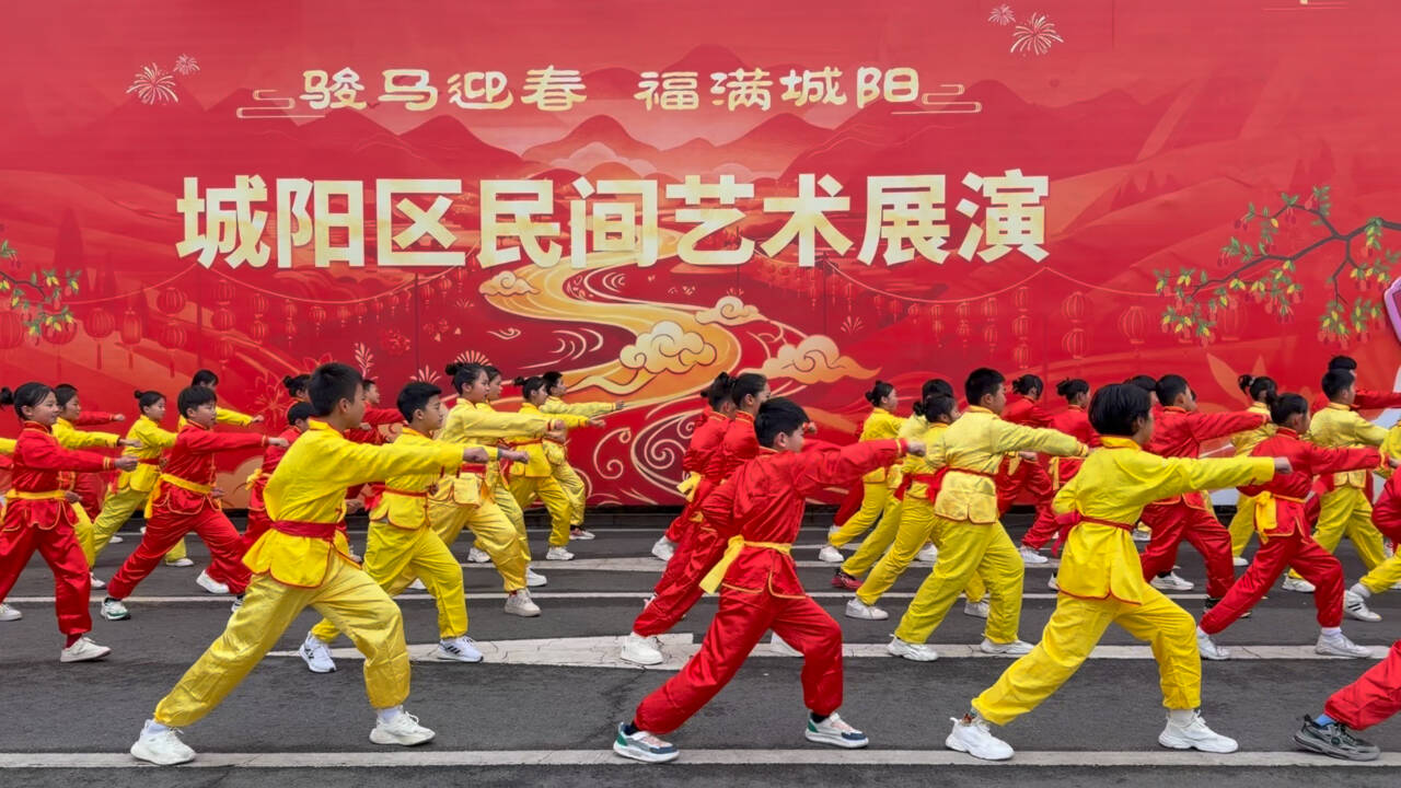 3月3日,青岛市城阳区第三十一届民间艺术展演举行。来自全区各街道的100余支社区文化队伍,3000余名群众演员盛装集结、依次亮相。秧歌、旱船、舞龙、舞狮、腰鼓、戏曲、民乐等节目轮番上演。现场还开设非遗集市,52个摊位品类丰富,市民在逛市集、赏非遗、品美食中,可近距离感受传统文化的独特魅力与烟火气息。