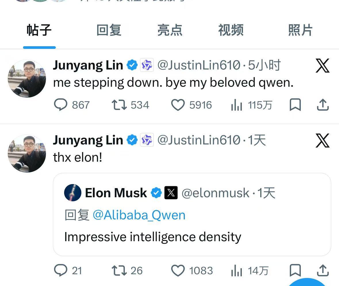 千问核心负责人林俊旸发文卸任