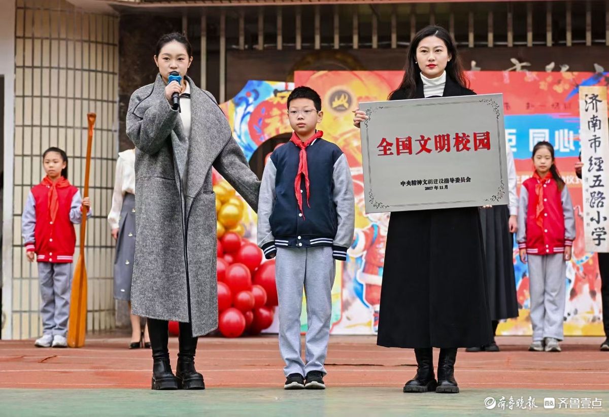 3月4日,在济南市经五路小学开学典礼现场,学校精心准备了多个节目,生动地展示了美德教育育人实践。