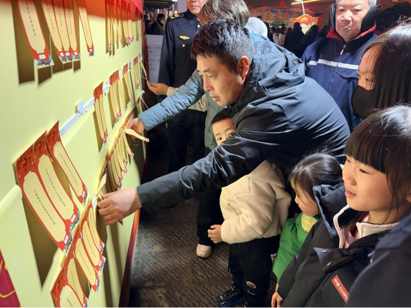 活动现场,一个个红灯笼高高挂起,一块块灯谜展板摆放在杨家圈文化街区。德城区文旅局围绕近期新修订的《中华人民共和国文物保护法》《山东省文物保护条例》《德州市大运河文化遗产保护传承利用条例》等文物保护法律法规,精心准备灯谜题目,引导群众踊跃参与答题,在互动中学习法律知识、了解文物保护的重要意义。来往的群众被这些特别的灯谜吸引,纷纷驻足思考,有的还开展热烈讨论,现场气氛十分热烈。