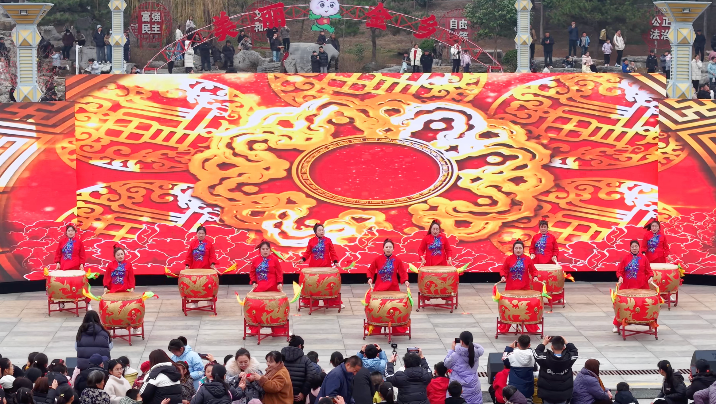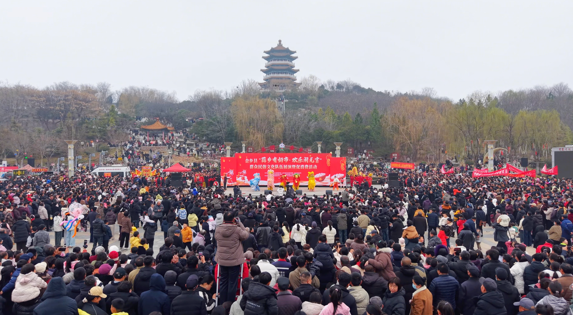 锣鼓喧天,龙狮共舞,机器人踏着鼓点列队登场……3月3日,金乡县金山公园人潮涌动,气氛热烈,“蒜乡有好市·欢乐闹元宵”群众民俗文化队伍展演暨促消费活动火热开启。这场融合了传统民俗、科技演绎与节日消费的群众性文化盛宴,让传统节日过出了“新滋味”。
