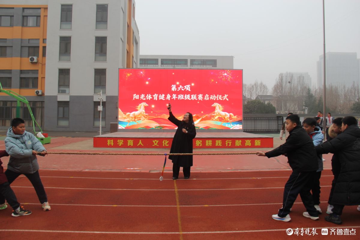 学校校长薛菲在致辞中寄语全体师生,以马年奋进之力,坚守“健康第一”理念,深耕五育并举,以昂扬姿态脚踏实地、逐梦前行,共推学校教育高质量发展。随后,阳光体育健身年班级联赛启动,新年的首场拔河比赛正式开始,师生团结协作、奋勇争先,将现场氛围推向高潮。