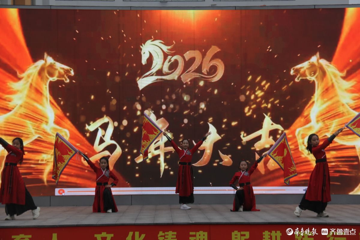 庄严的升旗仪式后,文艺展演轮番登场。舞蹈《策马乘风起华章》以灵动身姿演绎少年奋进姿态,相声《马年冲冲冲》用欢声笑语传递争先精神,现场掌声不断。
