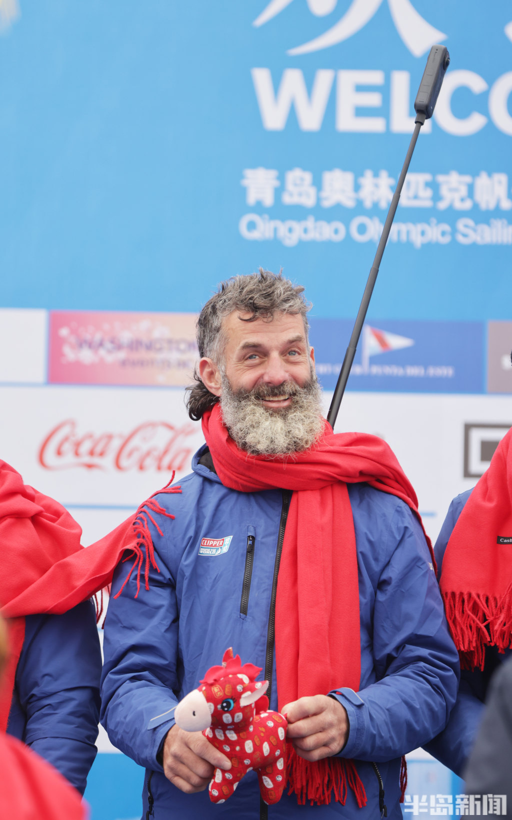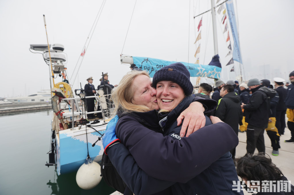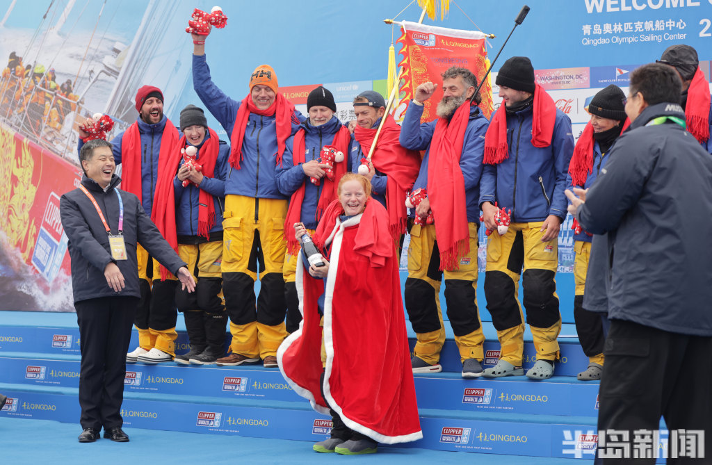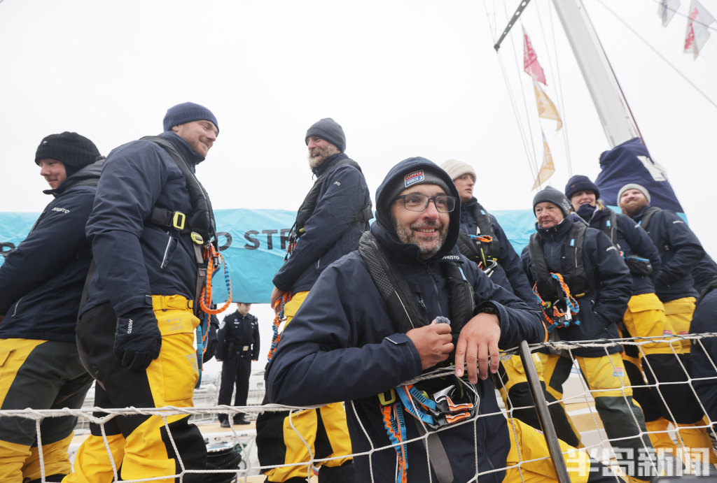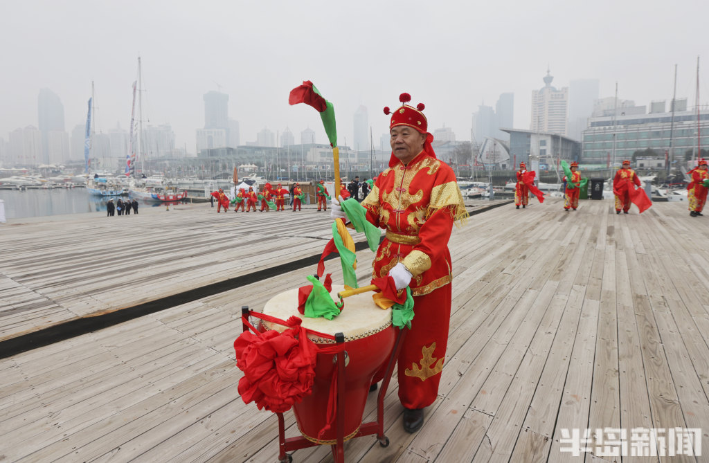 3月4日上午,2025-2026克利伯环球帆船赛青岛站欢迎仪式在青岛奥林匹克帆船中心码头举行,参赛大帆船陆续抵达青岛,船员们下船后很兴奋,品尝了香槟和青岛啤酒,近距离感受到了中国传统的年味,与舞龙、锣鼓队互动。