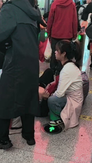 当天下午18时20分,李洋抵达昆明南站,准备检票换乘高铁前往普洱时,意外再次发生。候车队伍前方,一名中年男性突然晕厥倒地,周围群众瞬间陷入慌乱。