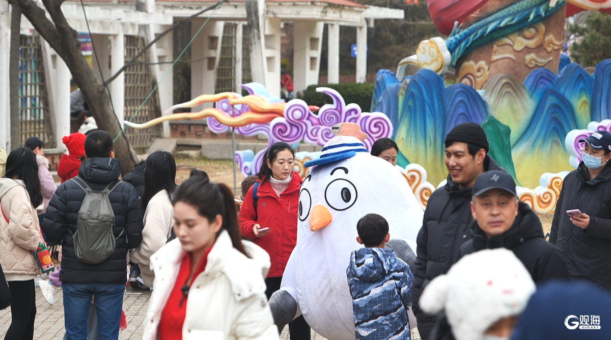 巡游队伍与市民游客亲密互动,现场发放特色文创礼品,欢声笑语不断。活动将非遗表演、卡通巡游与元宵灯会有机融合,进一步传播青岛海鸥IP,丰富游园体验,展现城市文旅魅力,为市民游客带来热闹喜庆、新意十足的节日氛围。