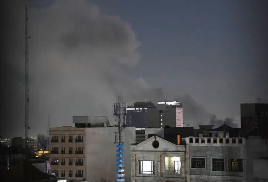 这是3月1日晚在伊朗首都德黑兰市区拍摄的浓烟。新华社发