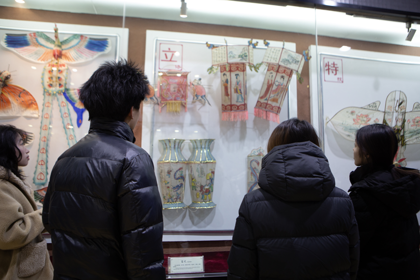 在潍坊世界风筝博物馆,学生系统了解风筝的历史脉络与制作技艺,沉浸式体验虚拟“飞翔”,感受古老技艺与现代科技的创新交融。国际展厅内,各国风筝汇聚一堂,生动展现了中华传统技艺的世界影响力。