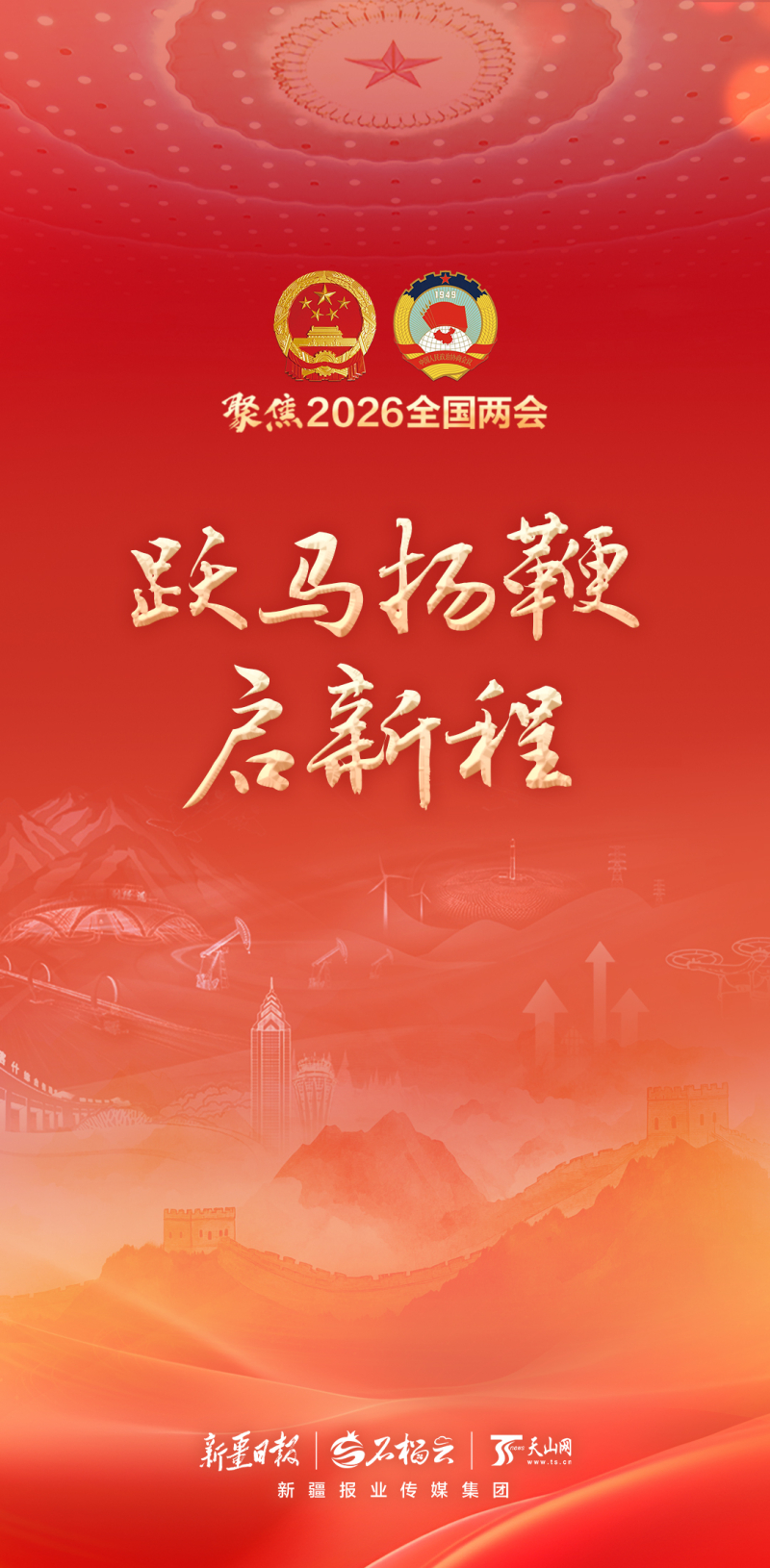 海报丨聚焦2026全国两会——跃马扬鞭启新程石榴云/新疆日报原创 2026-03-04 14:59:57聚焦2026全国两会——跃马扬鞭启新程。十四届全国人大四次会议和全国政协十四届四次会议分别于3月5日和3月4日在北京开幕。责任编辑:阿依提拉·图尔荪